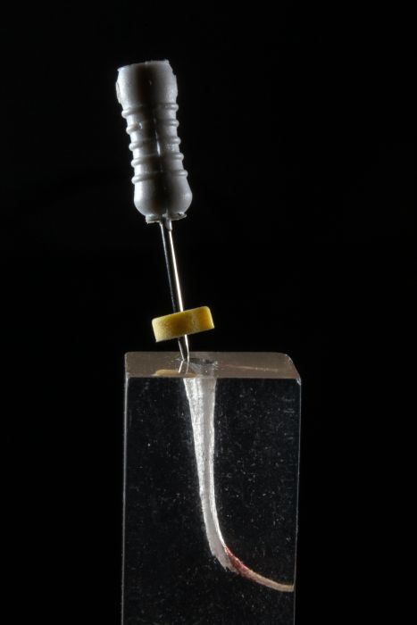 Větší část implantátu je pevně zakotvena v kosti čelisti, zatímco menší část vystupuje do úst a tvoří základ pro upevnění zubní korunky nebo můstku.
